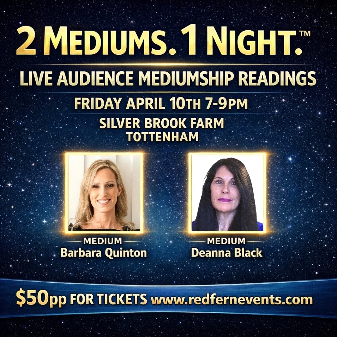 Spend a beautiful evening with Mediums Barbara Quinton and Deanna Black, Friday April 10th from 7-9pm at Silver Brook Farm (Con Rd 7, New Tecumseth)